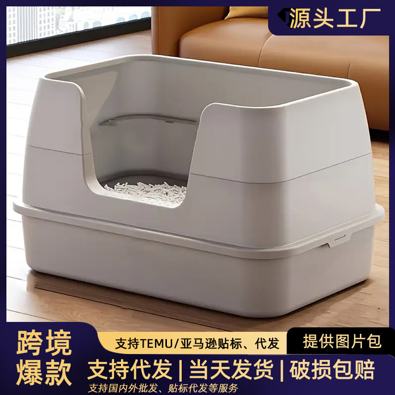Baskom Kotoran Kucing Ukuran Super Besar Model Baru Toilet Kucing Terbuka Terintegrasi Anti Percikan