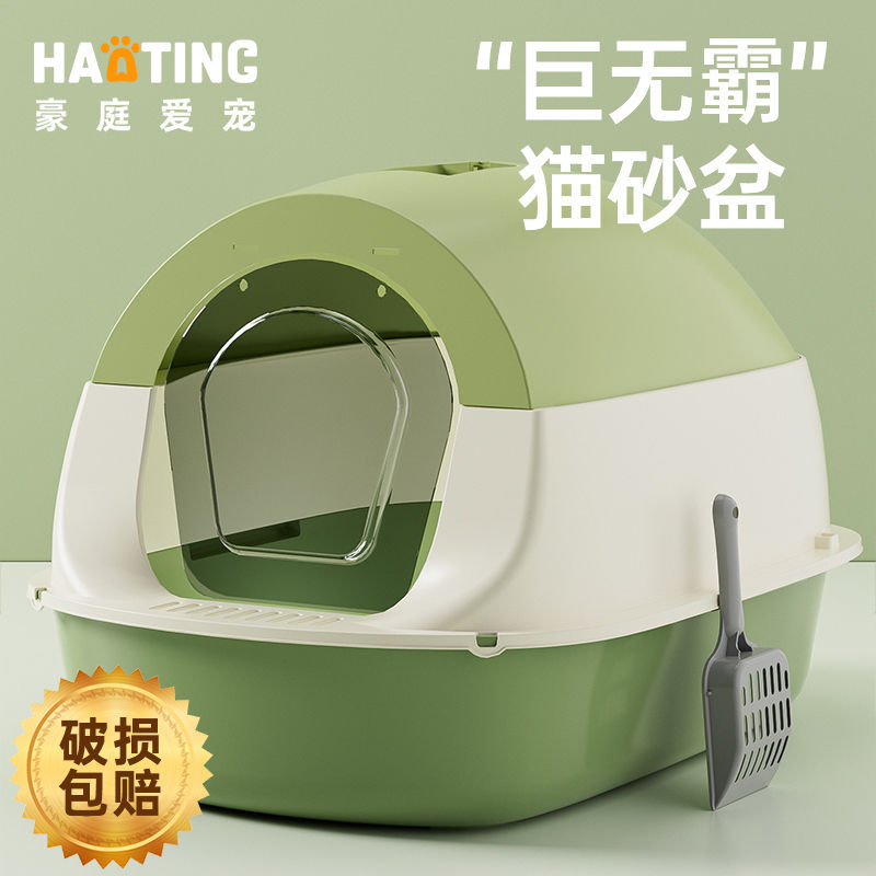 Kotak sampah kucing tertutup penuh, kotak sampah kucing ukuran besar anti percikan pasir perlengkapan kucing