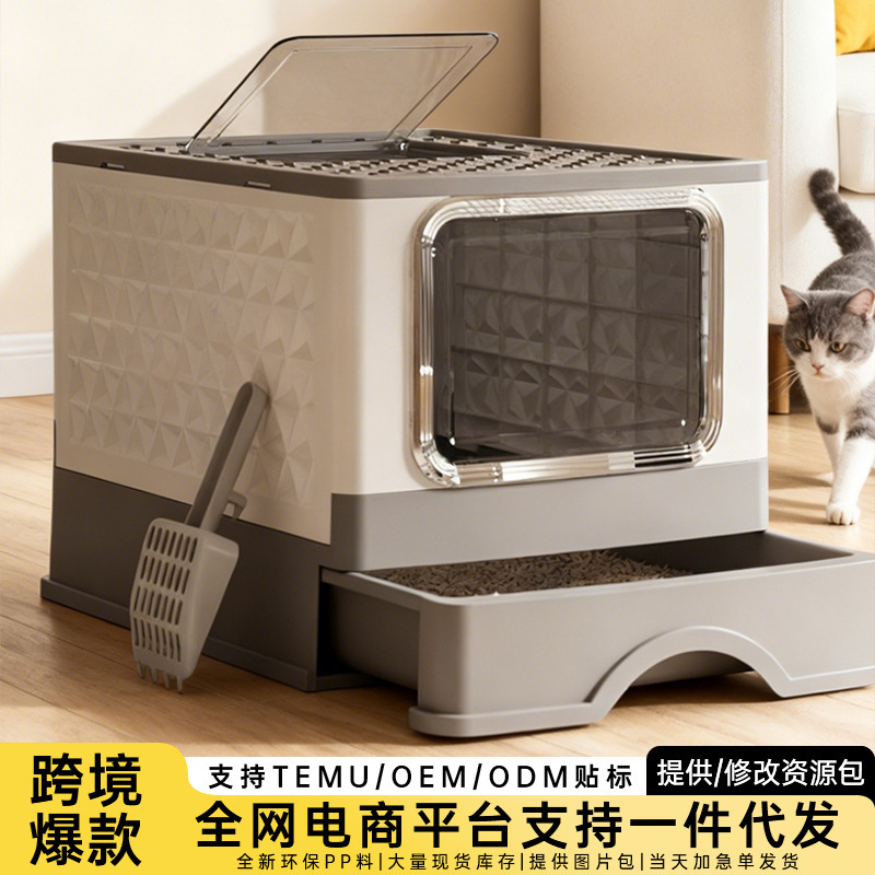 Kotak kotoran kucing lipat model Laci, perlengkapan kucing toilet kucing deodoran semi-tertutup rumah tangga, kotak sampah kucing besar