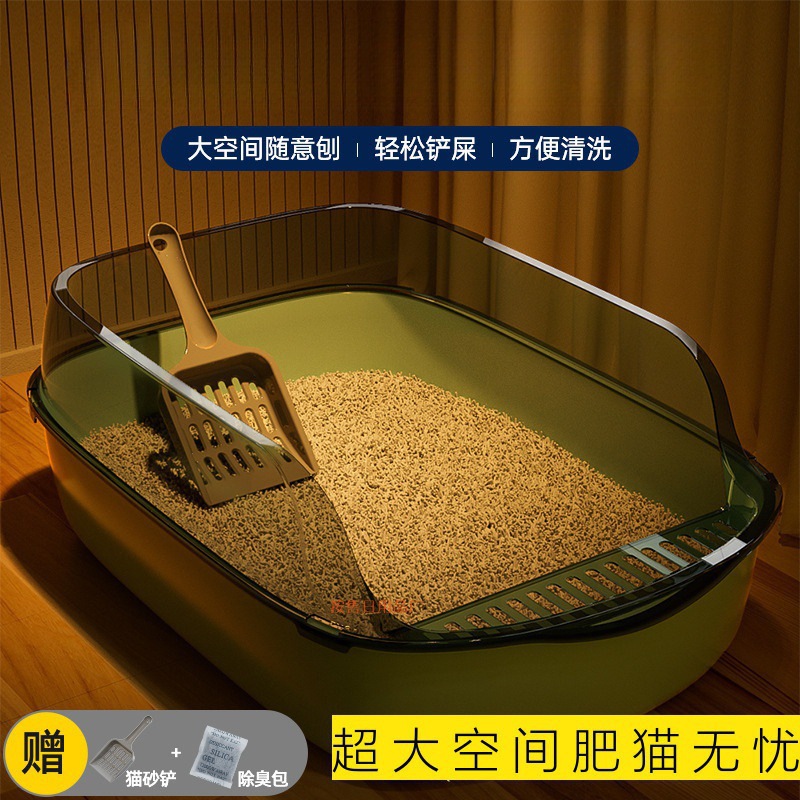 Pengiriman satu buah kotak sampah kucing terbuka super besar PP kotak sampah kucing plastik multi kucing dapat Sekop kotoran dengan nyaman