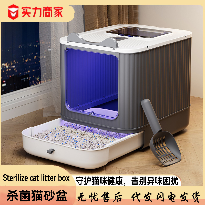 Baskom Anti Sterilisasi Kucing Anti Bau Otomatis UV Sterilisasi Kapasitas Besar Anti Percikan Desain Produk Hewan Peliharaan Ekstra Besar Grosir