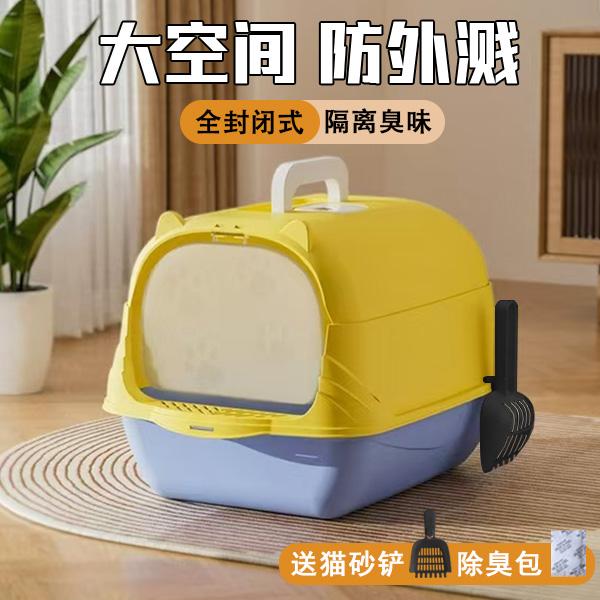 Kotak sampah kucing toilet kucing ukuran besar deodoran anti-cipratan kotak sampah kucing semi-tertutup kotak sampah kucing