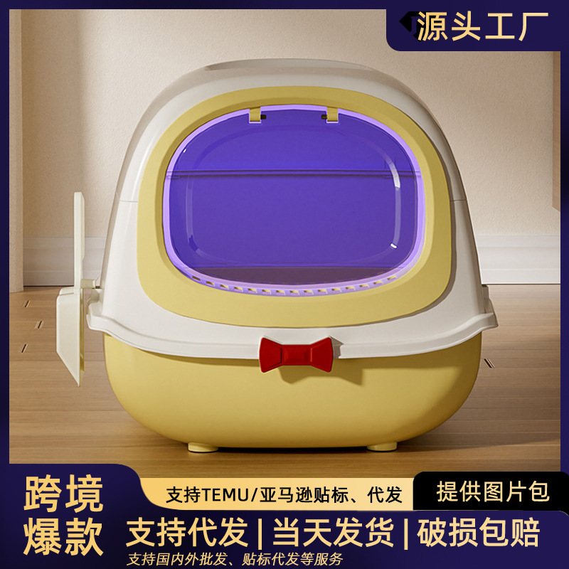 Kotak sampah kucing tertutup penuh kotak sampah kucing besar antipercikan deodoran toilet kucing persediaan kucing peliharaan pabrik grosir