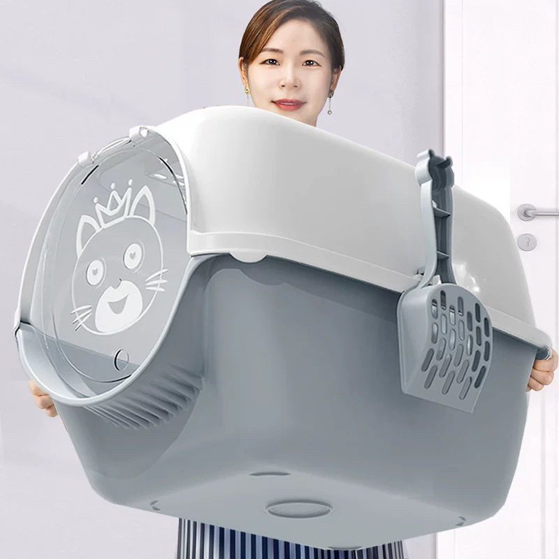 Kotak sampah kucing satu buah, perlengkapan kucing hewan peliharaan, kotak sampah kucing semi-tertutup, toilet kucing anti percikan, ukuran besar
