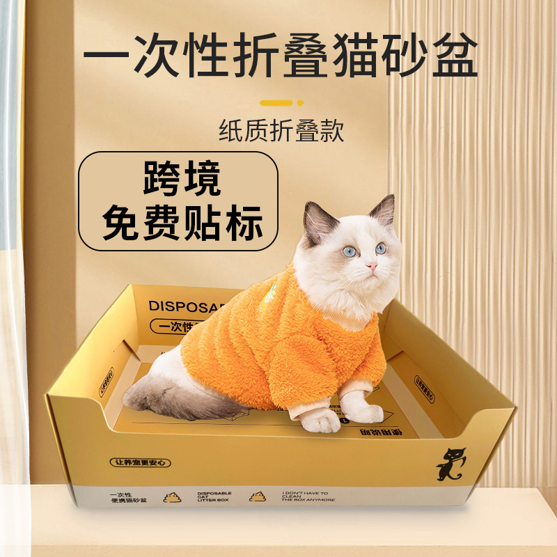 Kotak sampah kucing sekali pakai portabel, perjalanan kertas dapat dilipat perlengkapan kucing toilet hewan peliharaan