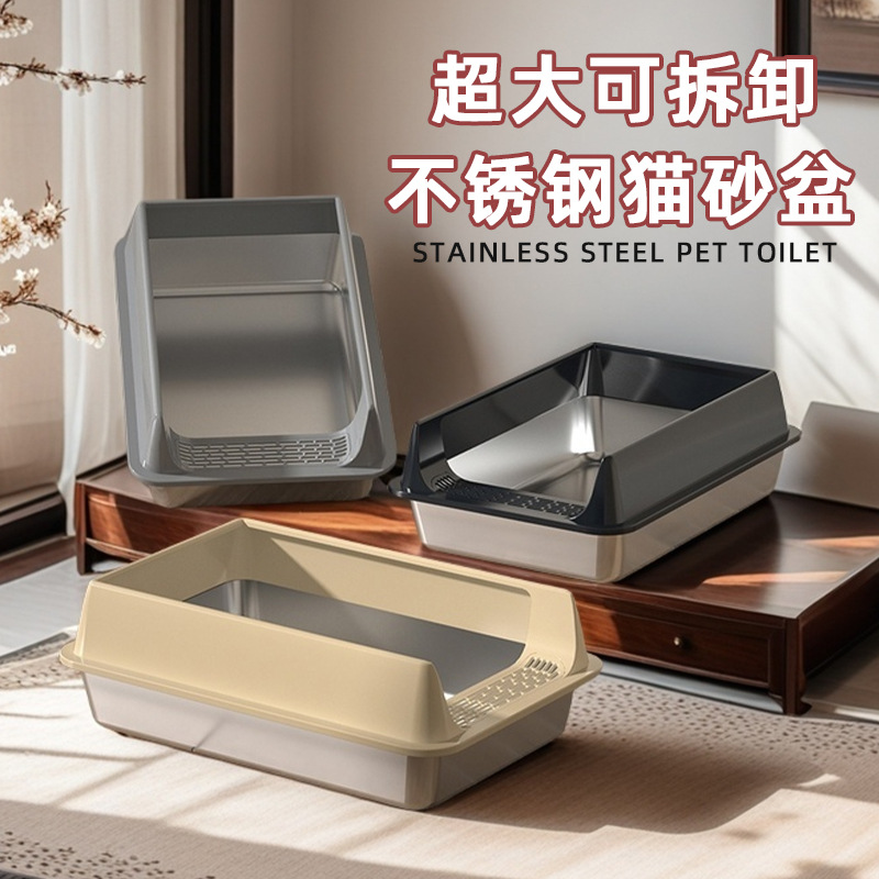 Pabrik Grosir Stainless Steel Sands Kucing Sands Semi Tertutup Anti Splash Pasir Ekstra Besar Produk Hewan Peliharaan Kucing Toilet Dapat Dilepas