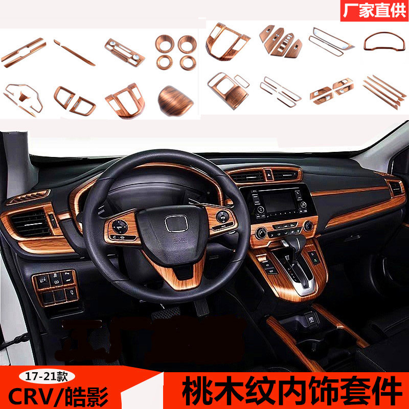 Cocok untuk 17-21 Dongfeng Honda CRV dekorasi interior butiran kayu persik Haoying dimodifikasi bingkai dekorasi panel gir kontrol tengah interior