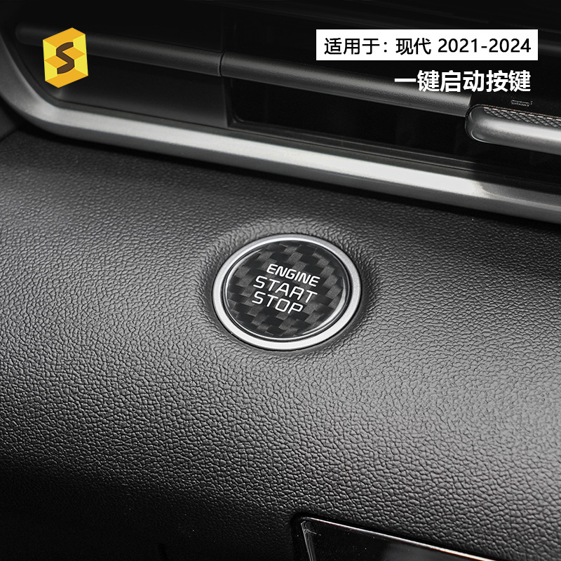 Untuk Hyundai Elantra/Tucson Pengapian Mobil Saklar Satu Tombol Mulai Stiker Hias Serat Karbon Nyata