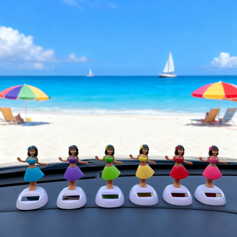 Penjualan laris lintas batas dekorasi tenaga surya kecil persediaan mobil untuk rok rumput hadiah dekorasi gadis Hawaii