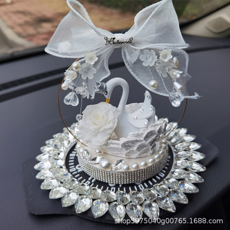 Dekorasi interior mobil angsa putih, dekorasi interior mobil angsa bunga abadi dekorasi konsol tengah mobil wanita lucu