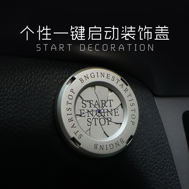 Tombol mulai mobil, cincin dekoratif, satu klik tombol modifikasi, stiker dekoratif sakelar pengapian, perlengkapan penutup pelindung