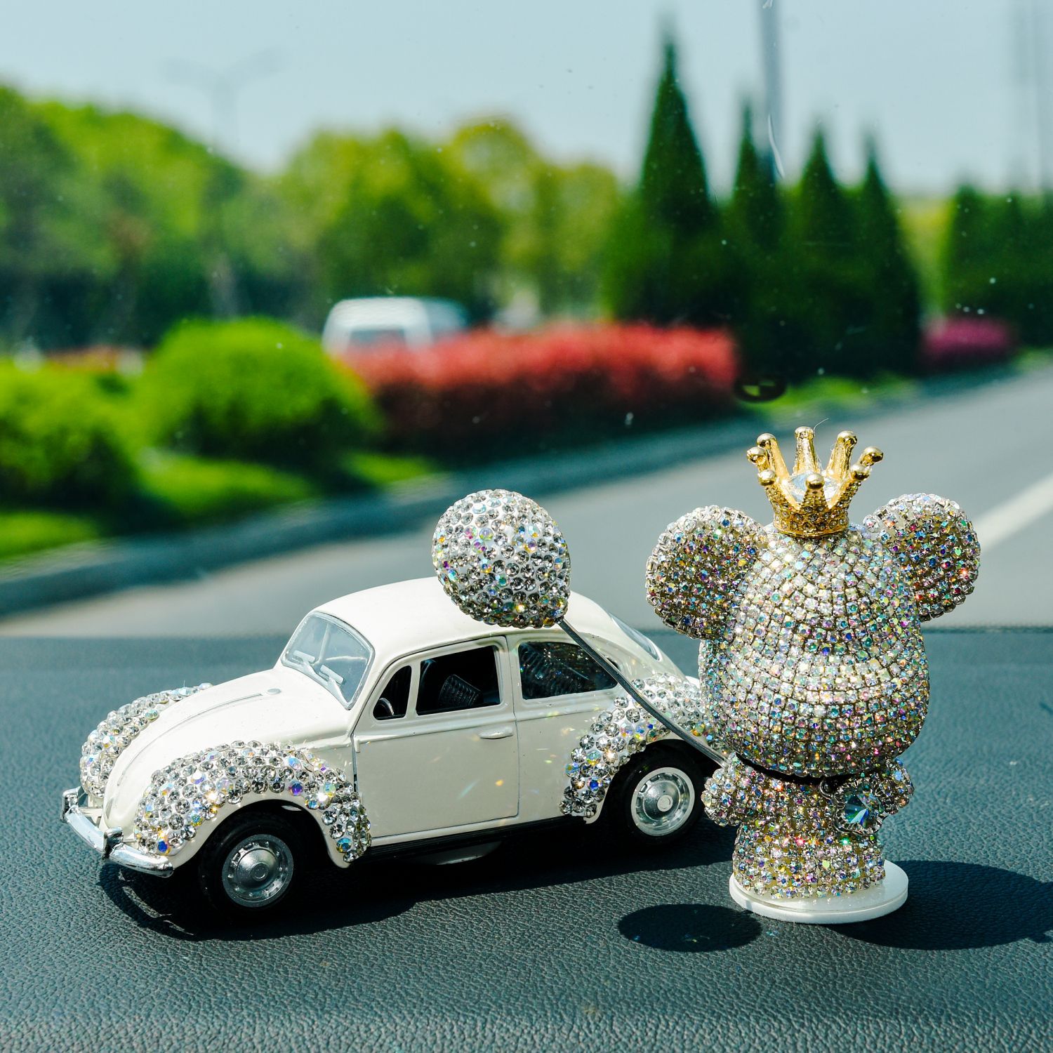 Aksesori Mobil bentuk berlian baru kreatif Aksesori Mobil motif beruang kepala besar tertanam berlian dekorasi mobil cinta ganda