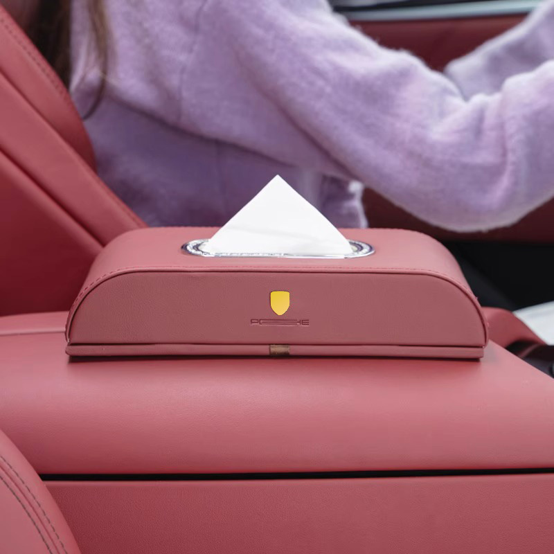 Cocok untuk Porsche Macan Bayan 718 Pa La Mera Taycan dekorasi interior kotak tisu mobil kotak tisu
