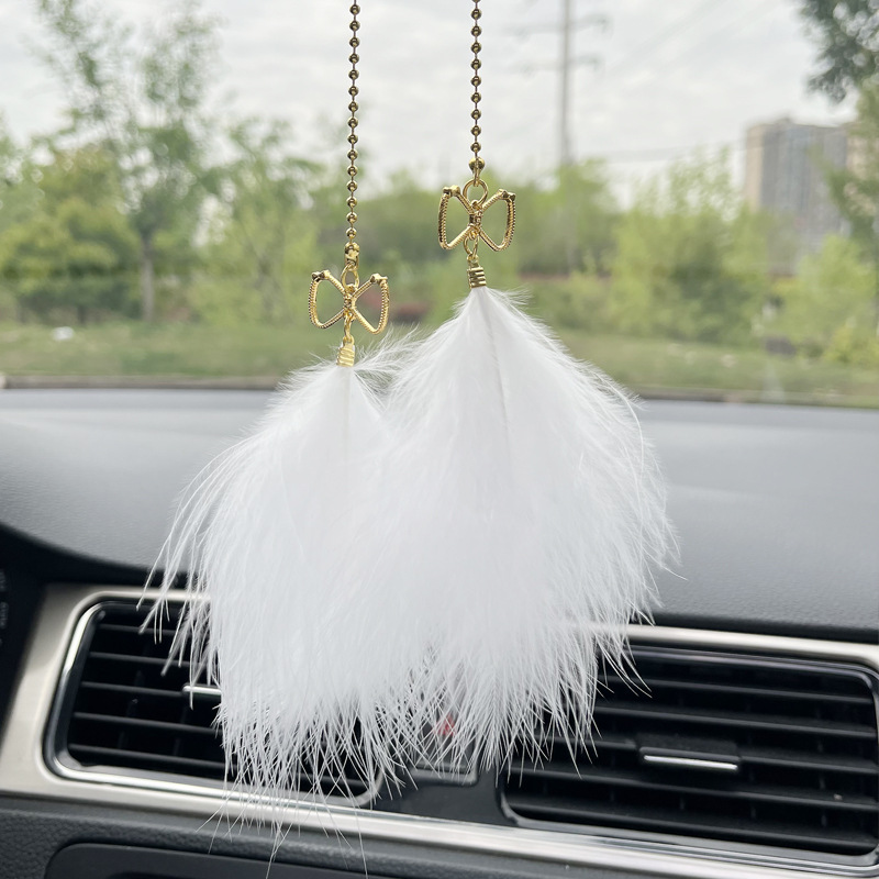 Liontin mobil liontin mobil dengan pita bulu, hadiah liontin bulu studio langsung merah