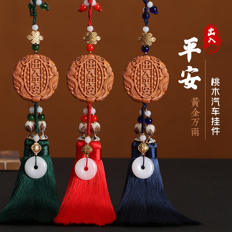 Liontin mobil, pintu masuk kayu persik murni dan keluar aman interior mobil liontin kaca spion hadiah dekorasi mobil