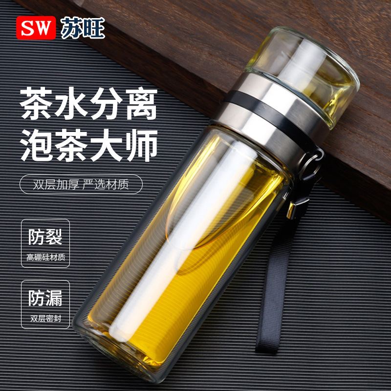 Cangkir Pemisah Teh, Cangkir Air Borosilikat Tinggi, Cangkir Teh Kaca, Cangkir Mobil Dua Lapis, Cangkir Air Hadiah, Bisnis Pria Bernilai Tinggi