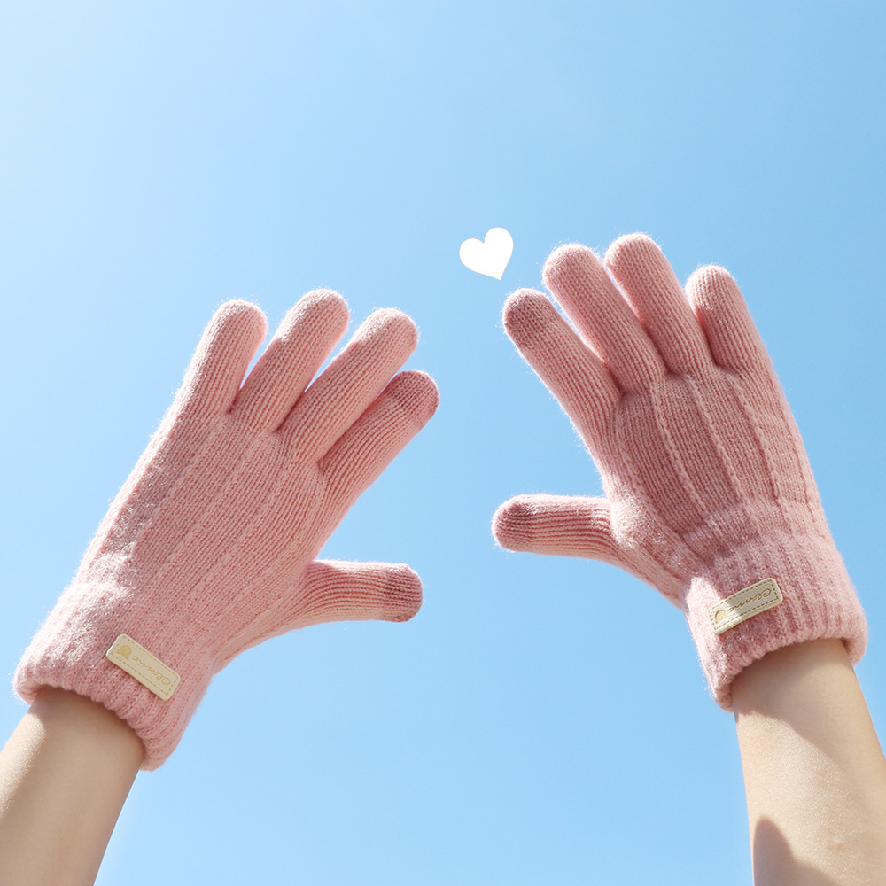 Sarung Tangan Rajutan Ditambah Beludru Musim Dingin Wanita Model Baru Sarung Tangan Layar Sentuh Jari Ekstra Tebal Lapisan Ganda Bersepeda Benang Wol Tetap Hangat Musim Dingin Sarung Tangan