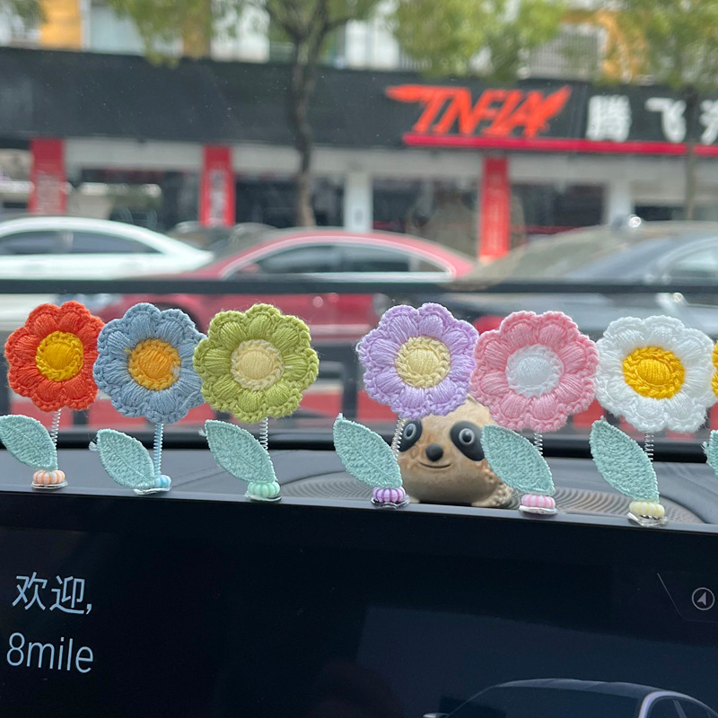 Dekorasi konsol goyang, gaya baru bunga kecil dekorasi mobil jendela mobil penyembuhan bunga segar lucu