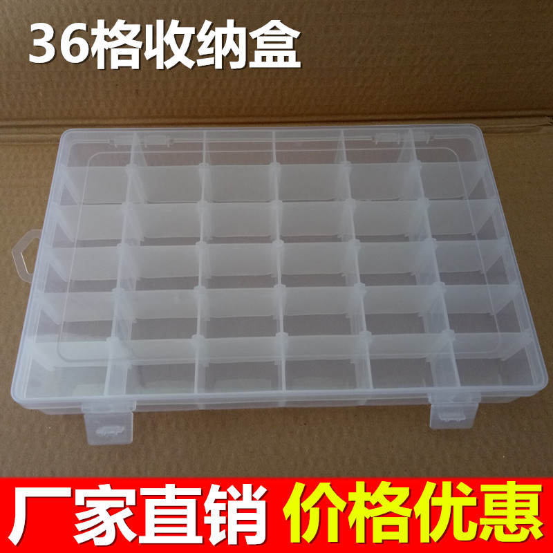 Kotak perhiasan plastik transparan 36 kisi, kotak perlengkapan memancing komponen manik-manik pp perangkat keras, kotak penyimpanan alat kemasan