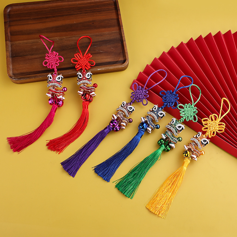 汽车挂件醒狮车内饰品吉祥物舞狮吊坠中国结后视镜挂绳流苏小狮子