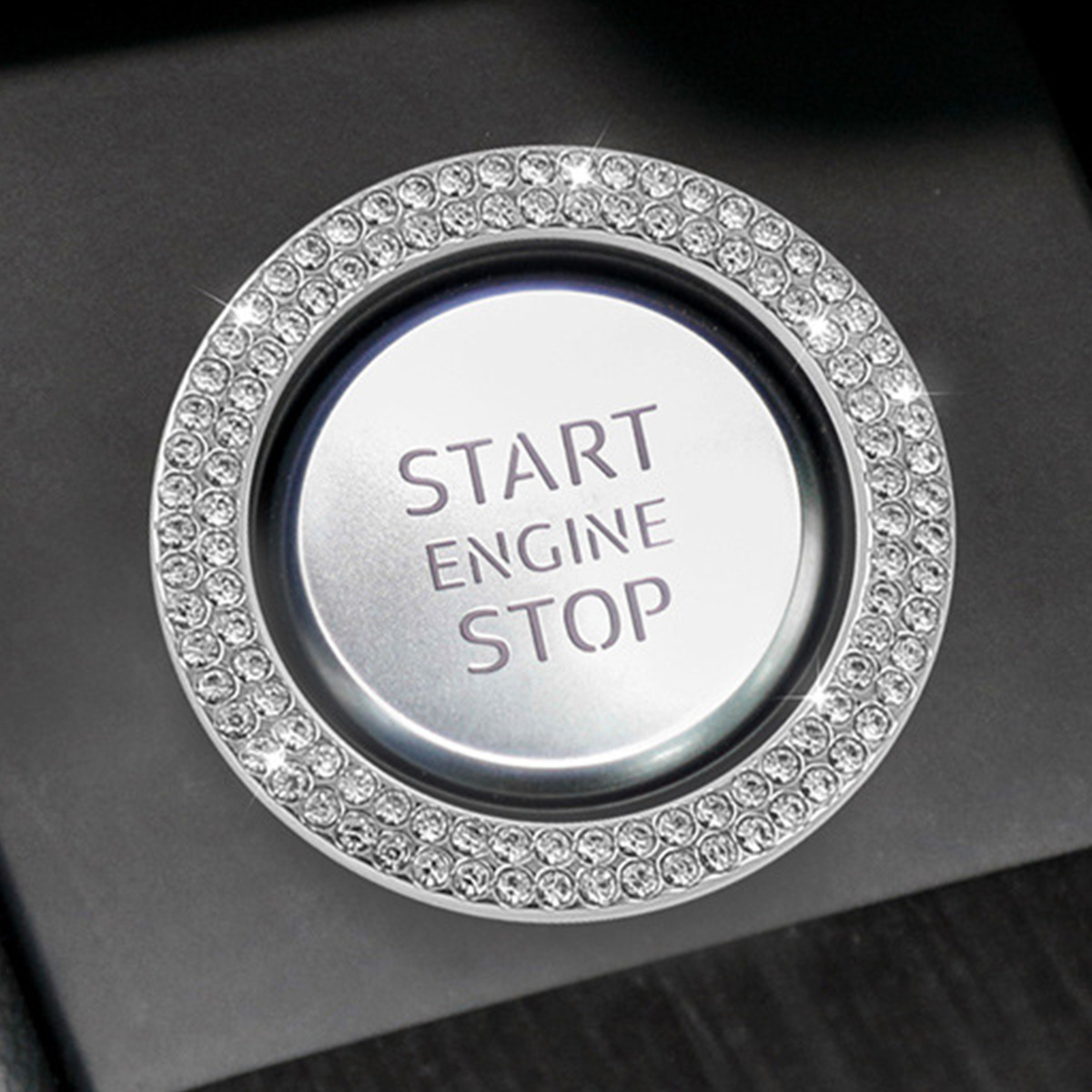 Cross-border tombol sakelar pengapian kristal baris ganda mobil cincin dekoratif mulai satu klik stiker pelindung dekoratif