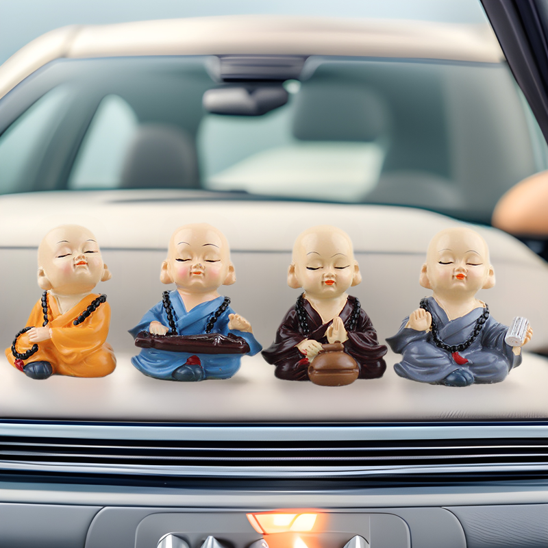 Boneka dekorasi interior mobil kreatif ornamen persediaan dekorasi mobil Sha mi kecil biksu tersenyum lucu lucu