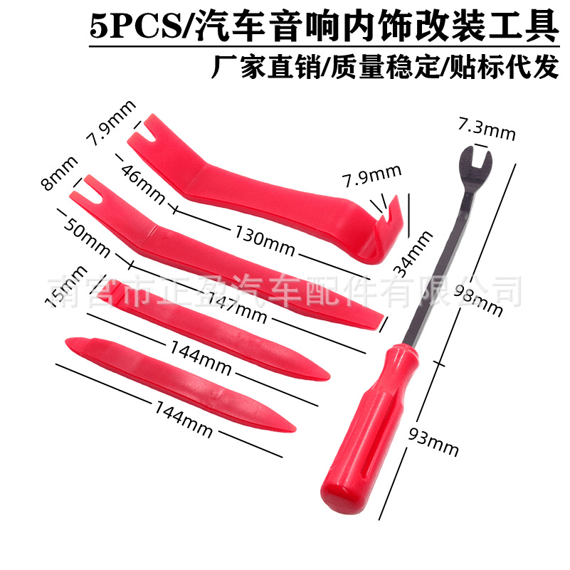 Alat pelepas audio mobil 5 buah, obeng panel pintu mobil dan dasbor audio anti gores rocker