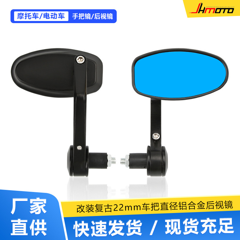 Cermin spion sepeda motor modifikasi, kaca spion mundur retro Oval diameter 22mm aluminium reflektif
