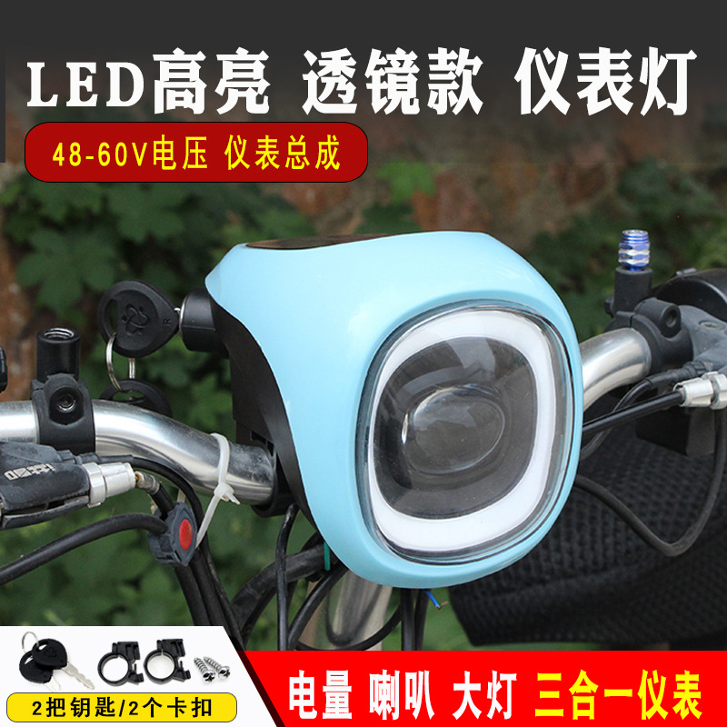 Lampu Rakitan Instrumen Kendaraan Listrik Universal dengan Klakson Display Daya 48V Lampu Depan Mobil Baterai Lampu LED Super Terang