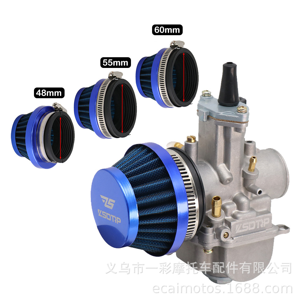 Filter udara modifikasi universal sepeda motor, kepala jamur 38 42 55mm aliran besar dapat dicuci