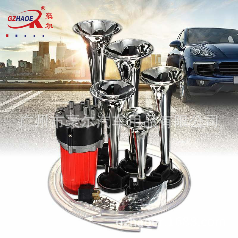 Penjualan langsung pabrik sepeda motor mobil 12v klakson udara pompa elektrik lima tabung klakson musik elektroplating penawaran khusus grosir