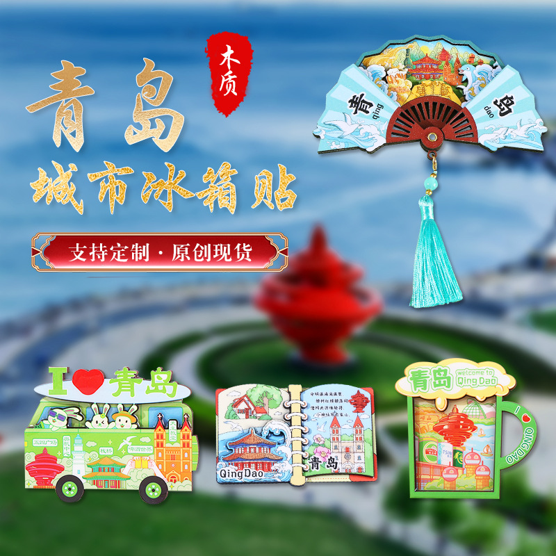 Zibo kota indah tempat kayu epoxy kulkas stiker budaya hadiah kreatif kayu magnetik kartun kerajinan grosir