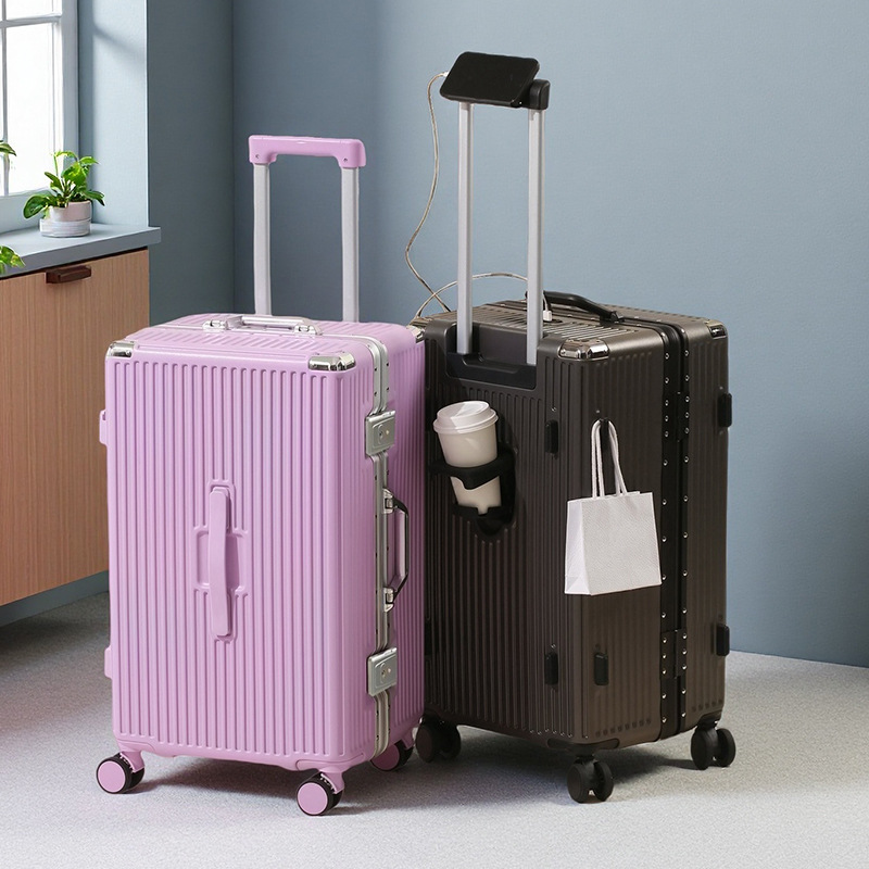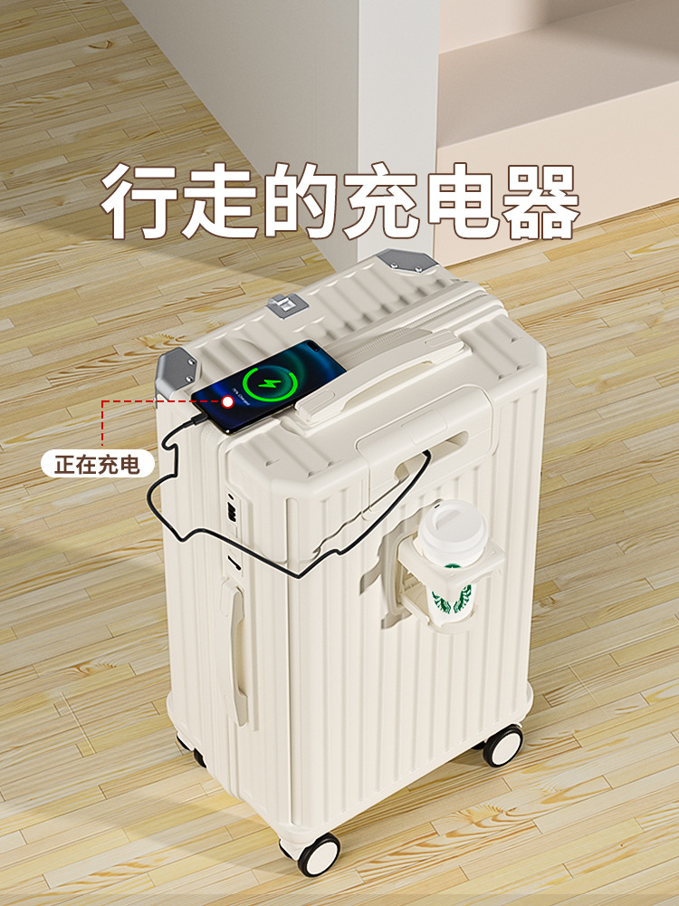 Kotak Perjalanan Kata Sandi Rak Gelas Air Model Baru Kotak Boarding 20 Inci Pembukaan Depan Multifungsi Pria Wanita Batang Tarik Lebar