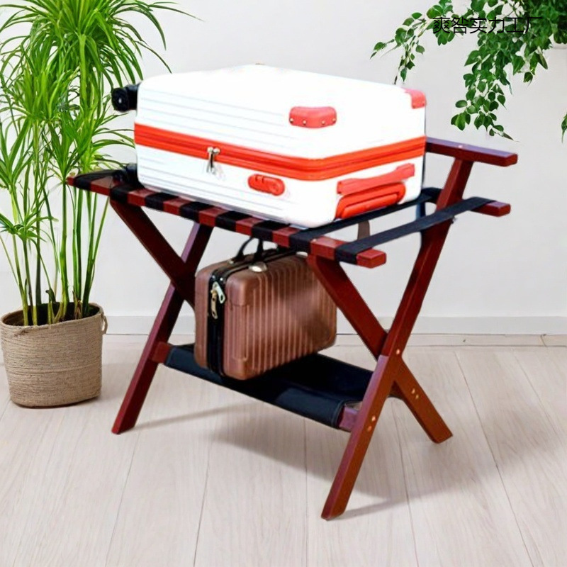 Rak Tempat Tidur Rak Penyimpanan Lipat Kayu Solid Rak Bagasi Hotel Sementara Menempatkan Pakaian di Sisi Tempat Tidur Kamar Tidur