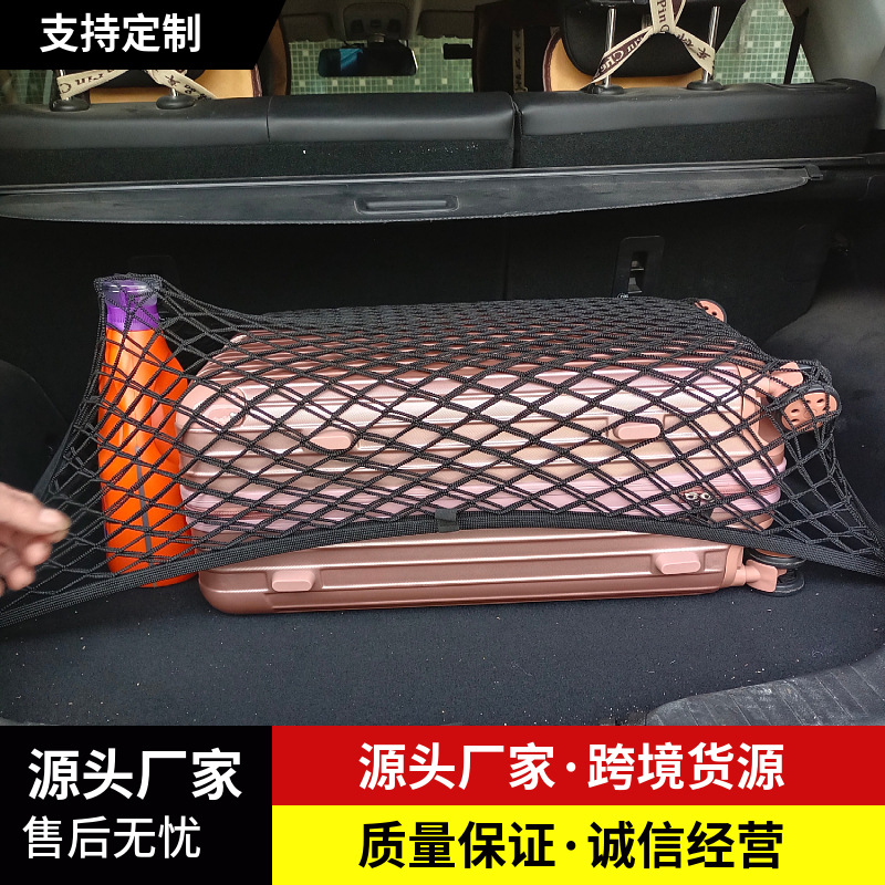 Produsen menyediakan tas penyimpanan bagasi mobil lapisan ganda jaring penyimpanan elastis kantong perlengkapan penyimpanan bagasi sampah Mobil