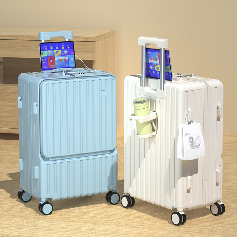 Kotak Perjalanan Boarding Password Nyaman dan Tahan Lama Tas Troli Roda Universal Multifungsi Wanita Koper Terbuka Depan Model Baru