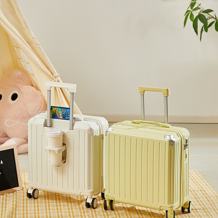 Penjualan langsung pabrik kopor troli multifungsi 20 inci koper pemegang cangkir air koper asrama pengisi daya