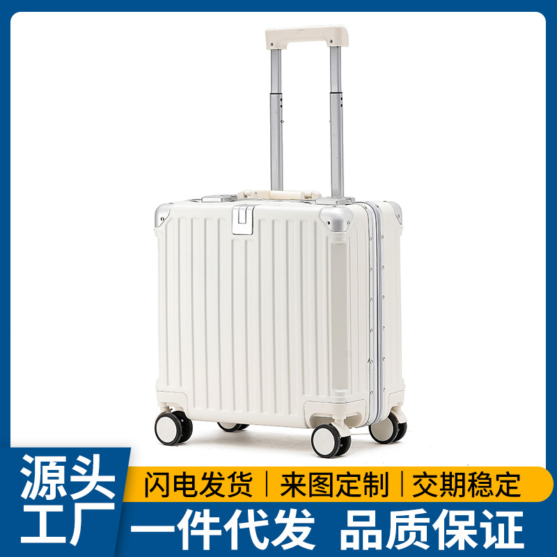 Kotak Naik Pesawat 18 Inci Kotak Koper Bingkai Aluminium Multifungsi Pria Wanita Kotak Kecil Troli Tas Perjalanan Model Baru 2024
