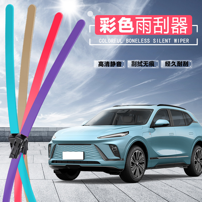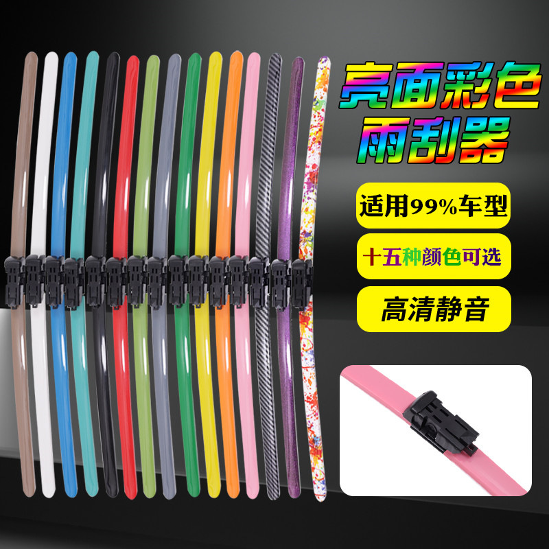 Wiper mobil grosir warna-warni, wiper universal tanpa bingkai yang senyap dan dapat dimodifikasi secara personal dalam warna ungu, putih, merah, biru, kuning, hijau, dan merah muda.
