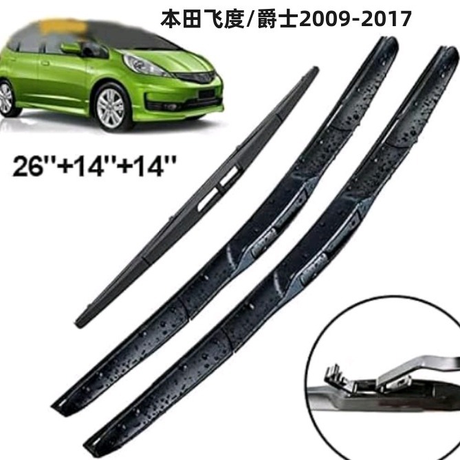 Cocok untuk Honda Fit jazz 2009-2017 kaca depan dan belakang wiper wiper blade perakit setelan