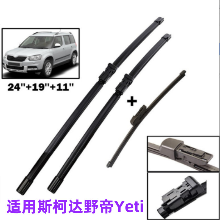 Berlaku untuk Skoda Yeti jendela depan dan belakang wiper tanpa tulang bilah wiper kaca depan setelan perakitan strip perekat