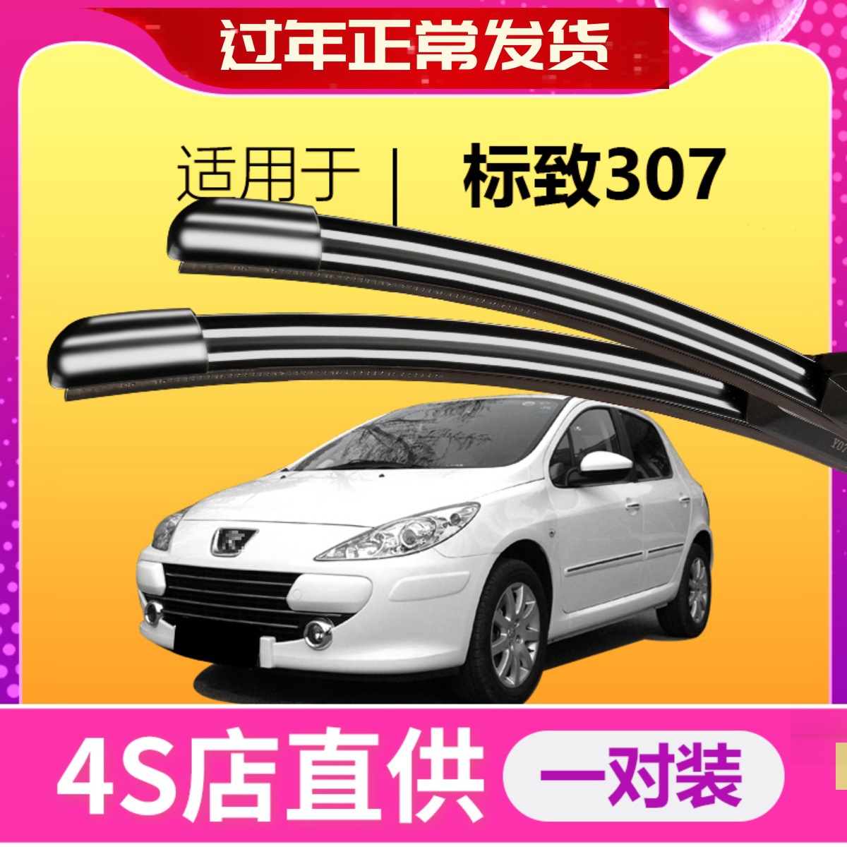 Cocok untuk Dongfeng logo 307 "wiper strip asli pabrik upgrade tanpa tulang depan dan belakang strip perekat asli wiper khusus untuk Peugeot