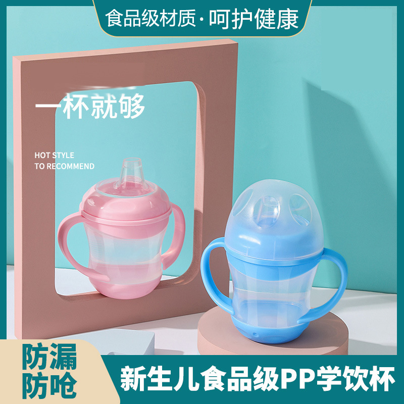 Cangkir air bayi jenis bebek anti-drip dengan tutup dan pegangan cangkir minum anak-anak cangkir bebek
