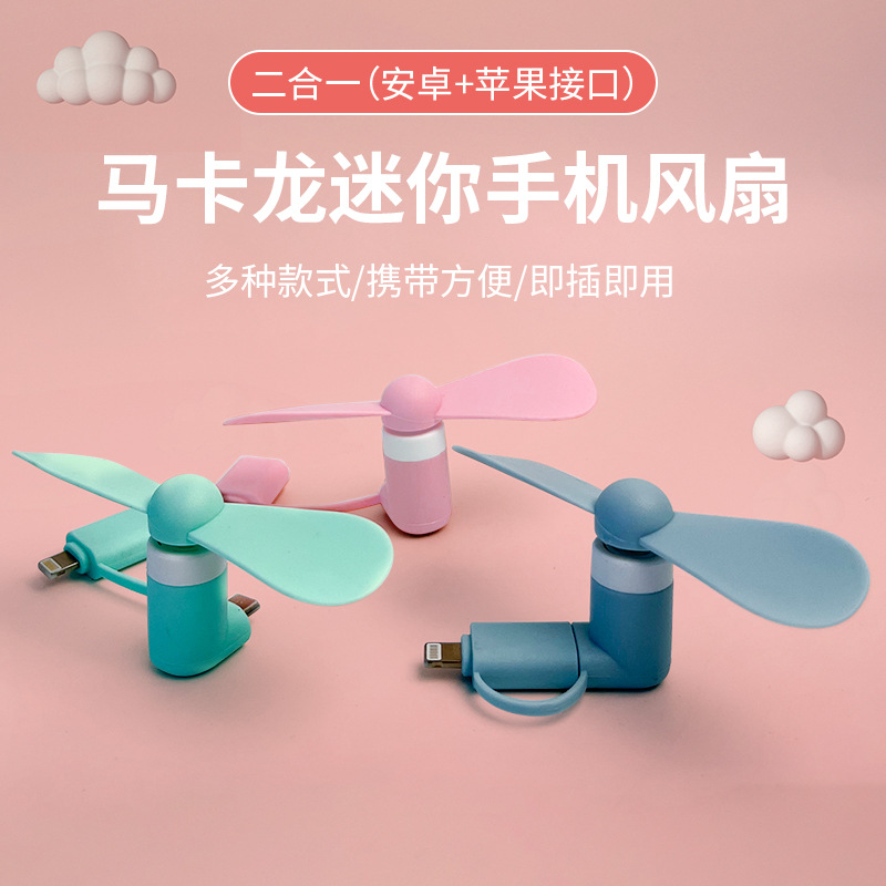 Kipas kecil ponsel macaron tipe-c, kipas mini untuk ponsel Android Apple, kipas kecil