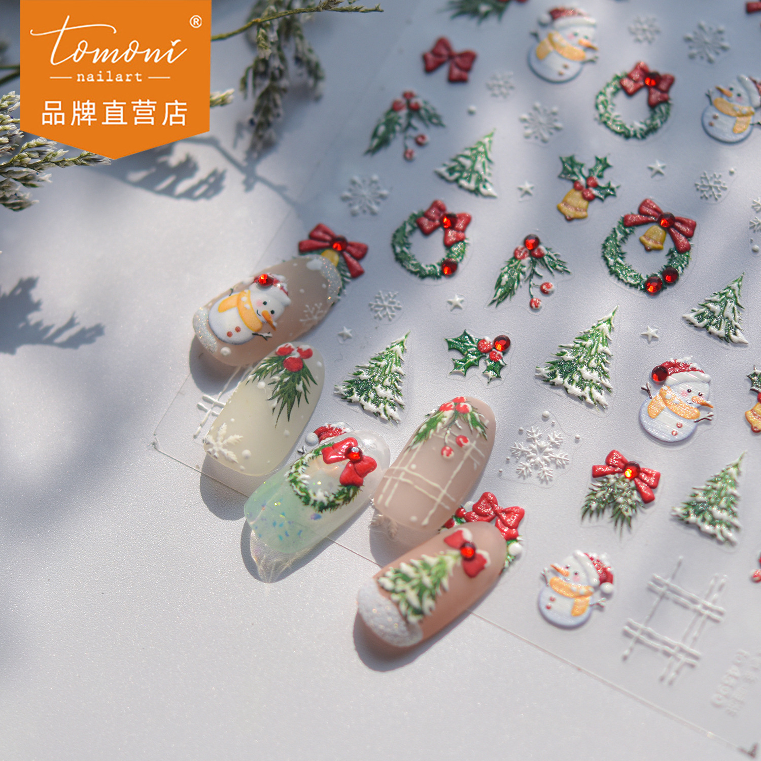 tomoni晶钻美甲贴纸ins 爆款日系文具指甲贴圣诞松树美甲辅助贴纸