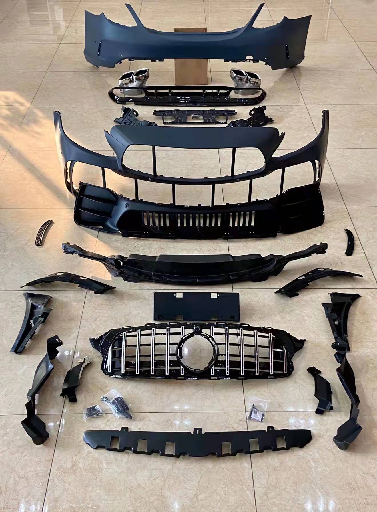 Berlaku untuk 2021 mercedes-benz c-class W205 penutup Mamba hitam modifikasi, bumper depan perakitan bumper belakang jaring tengah Rakitan
