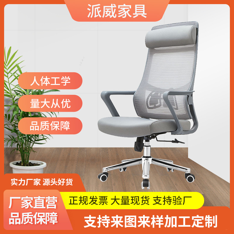 Kursi komputer kursi kantor dengan katrol, kursi sandaran kepala dapat disesuaikan, kursi berpunggung tinggi, kursi layar belakang mesh