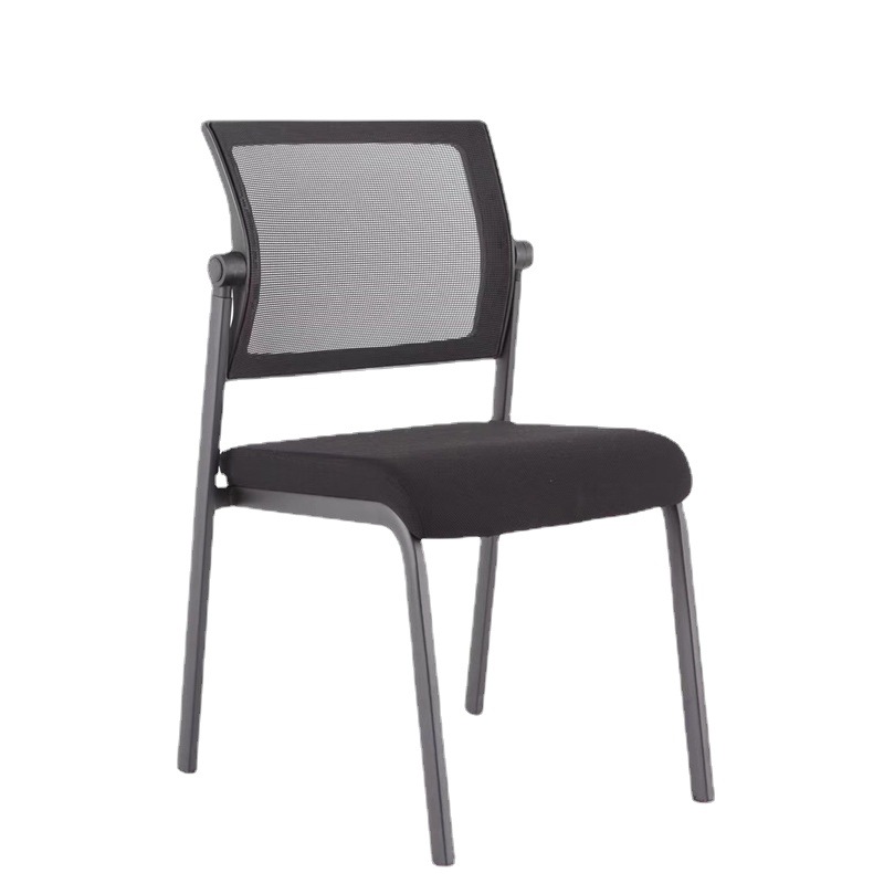Kursi konferensi jaring hitam, sandaran tangan empat kaki dapat ditumpuk latihan kursi kantor dengan katrol sandaran tangan