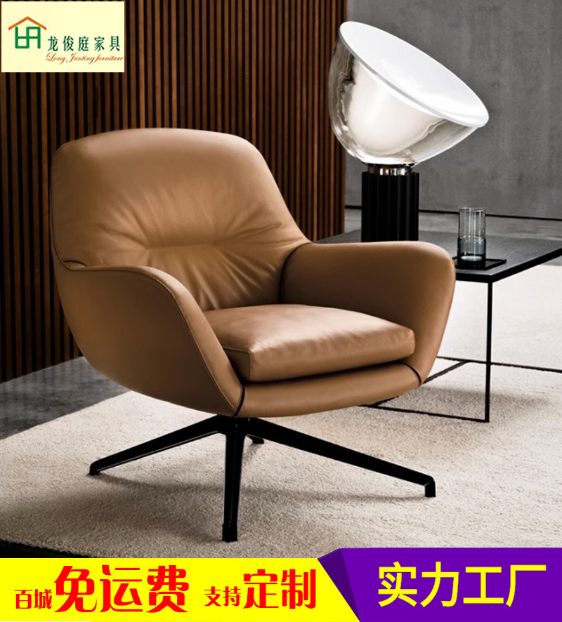 Kursi sofa tunggal Italia, desainer kursi santai rumah ruang tamu kreatif kursi malas berputar kulit