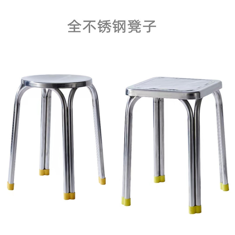 Bangku bulat baja tahan karat dipertebal bangku empat kaki rumah tangga bangku persegi pabrik kantin penyimpanan kursi makan bangku kaki tinggi grosir